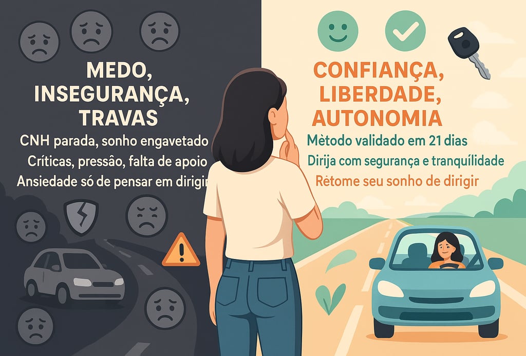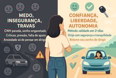 ✨ A solução? Ter o método certo, pronto para aplicar — sem pressa, sem pressão — e finalmente conquistar sua liberdade ao volante.